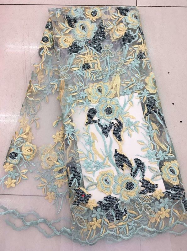 スパンコールレース生地、マルチカラー刺繍フローラルドレスレース生地、ガウン用は、自然で無公害で高品質な素材を選択しています