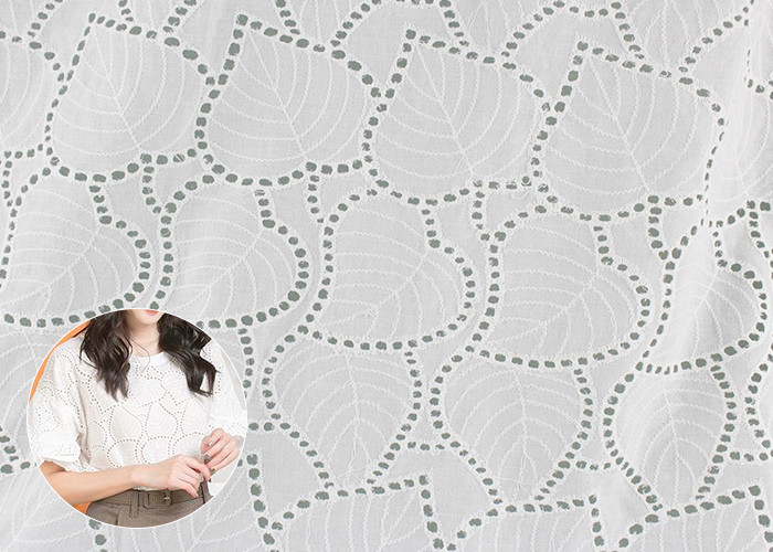 白いアイレット 綿のダース 布の葉紋刺身 服のブラウス選択された天然で汚染のない高品質の材料