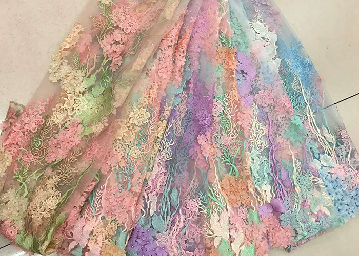 3D 数珠の蕾の織物,スカートのための多色の花刺し織物