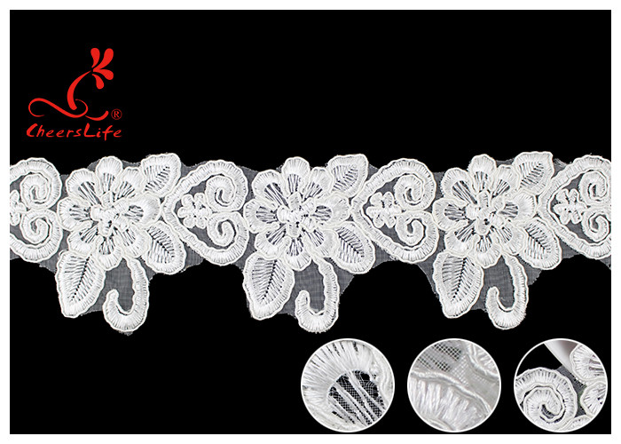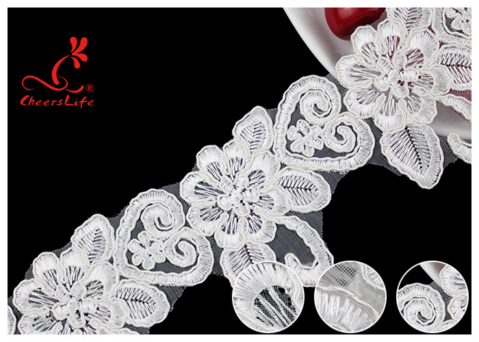 花刺しナイロンメッシュ 綿繊維のステンレス トリム 結婚式のドレス リボン